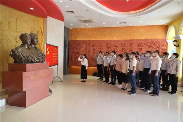 全体党员怀着崇敬的心情,参观周文雍陈铁军烈士纪念馆。党员们从一幅幅照片、一件件文物、一幕幕场景中深刻体悟烈士用鲜血和生命诠释赤胆忠诚、坚贞不屈、大公无私的革命精神。党员们面对周文雍陈铁军铜像,庄严地重温了入党誓词。